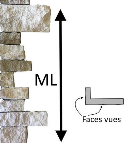 Parement pierre ANGLE en « L » Montagnac d’Auberoche Clair Eclaté, épaisseur 2 à 4cm – Prix au ml