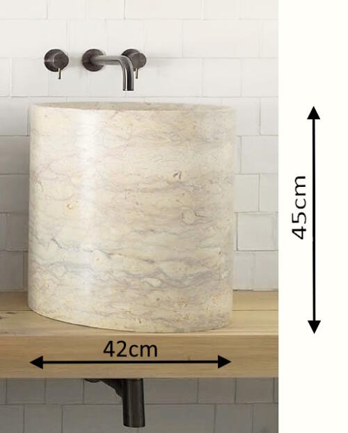 Vasque TOTEM Travertin Clair pierre naturelle Diamètre 42cm x 90cm de haut