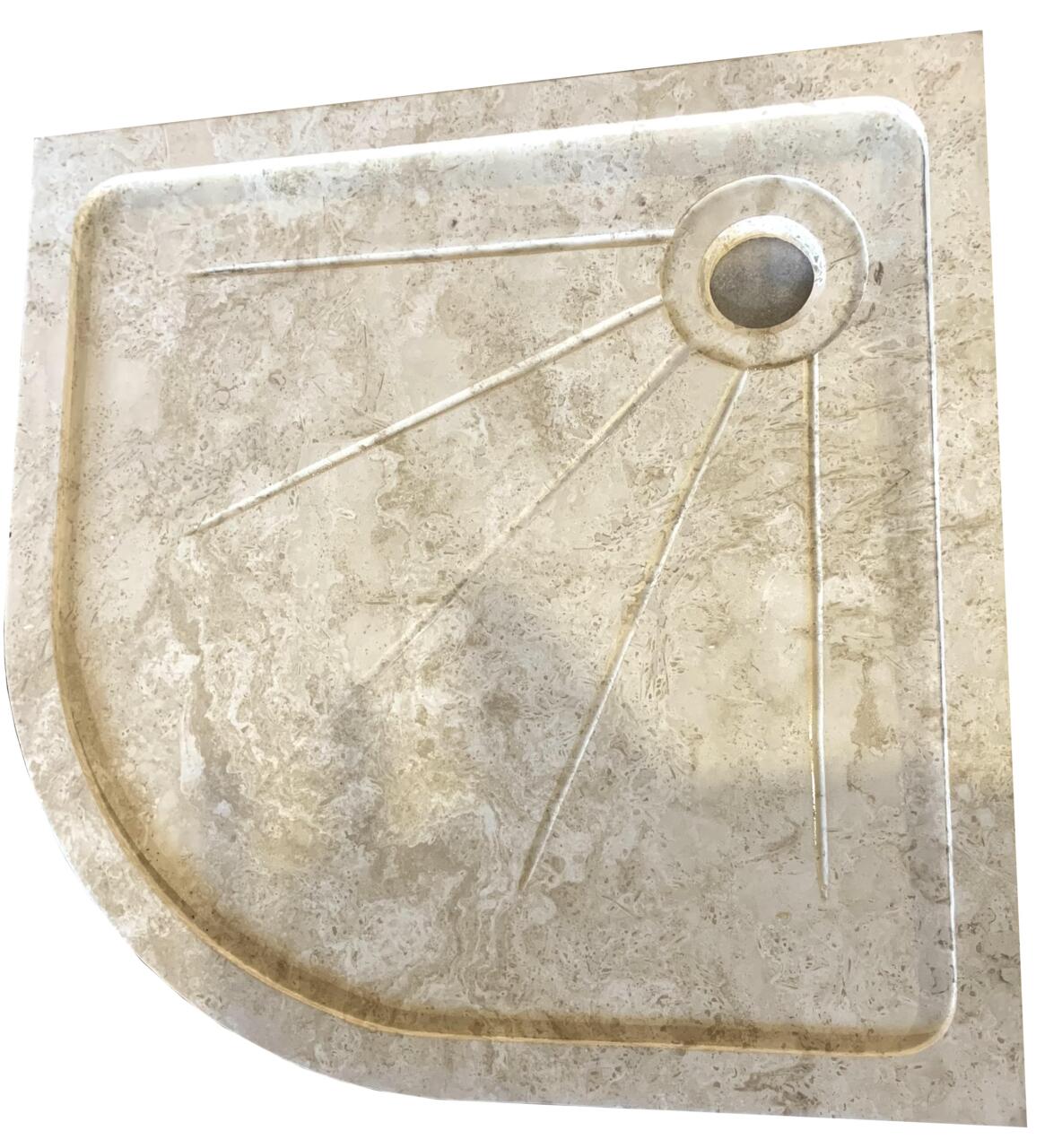 Bac à douche d’angle Travertin 90x90cm Brignoles + cannelures, épaisseur 5cm