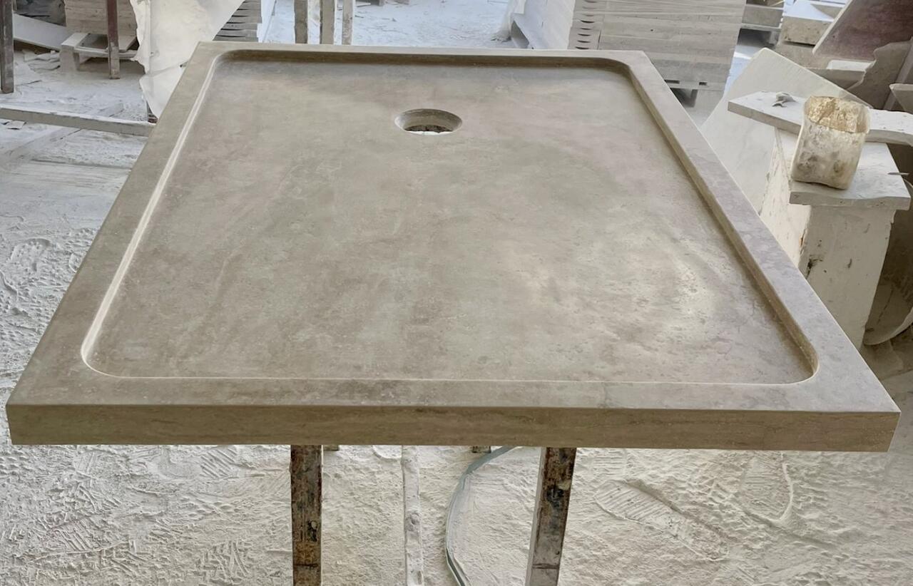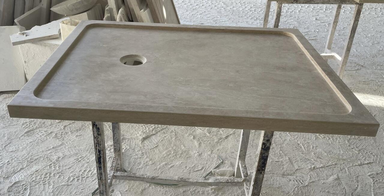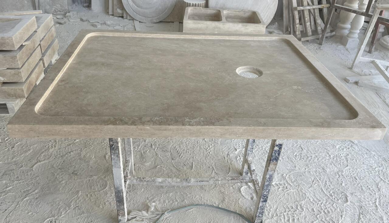 Bac à douche, receveur en TRAVERTIN beige clair, 120 x 90 x 5cm (110kg)