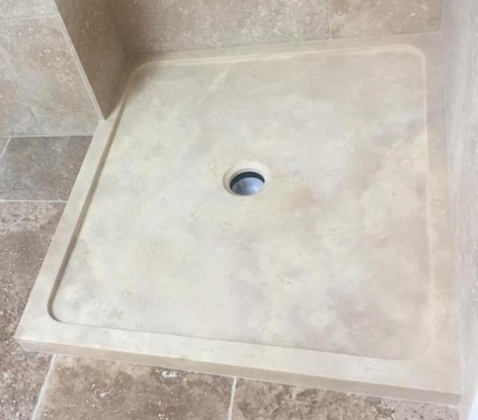 Bac à douche, receveur douche en pierre naturelle, Travertin 80x80cm, épaisseur 5cm