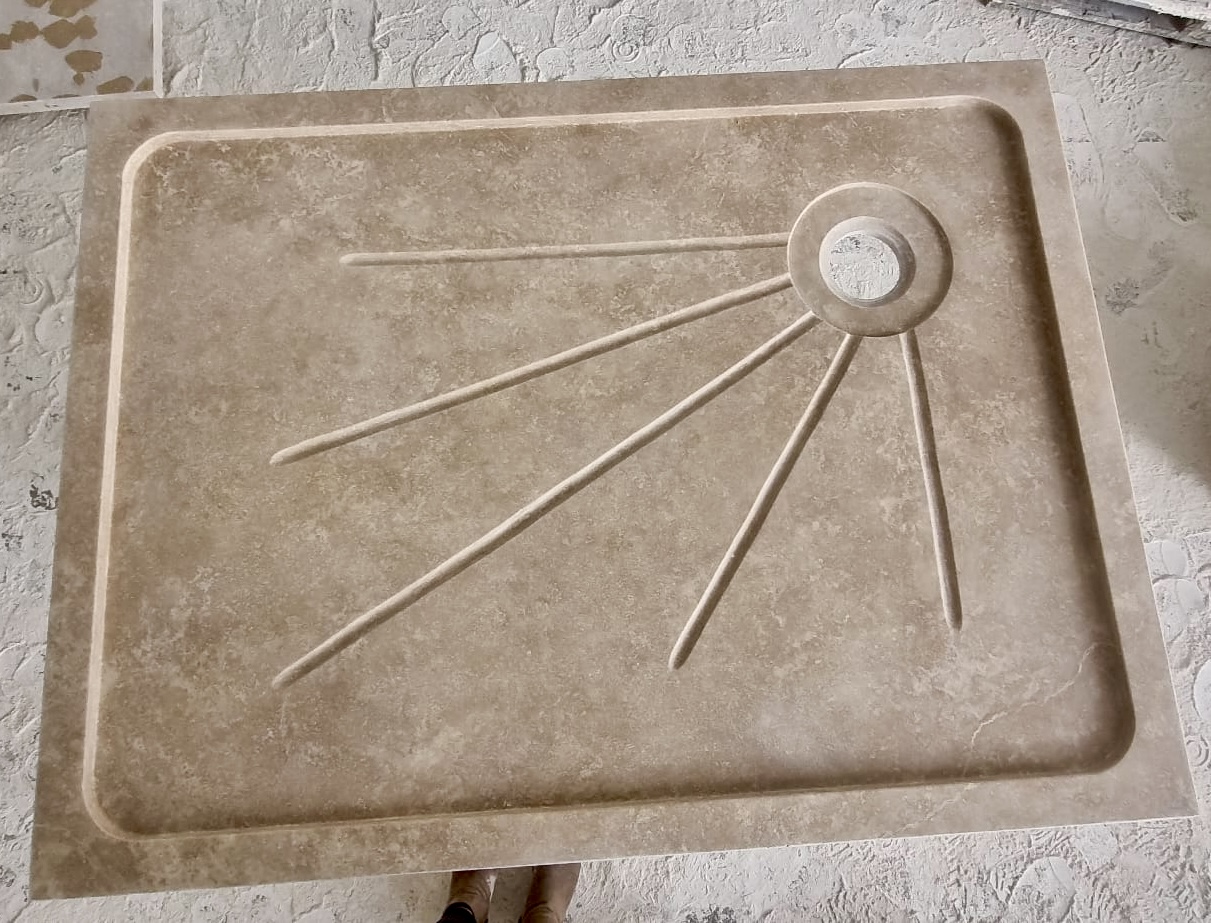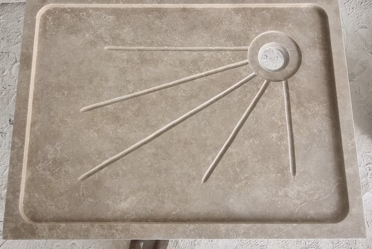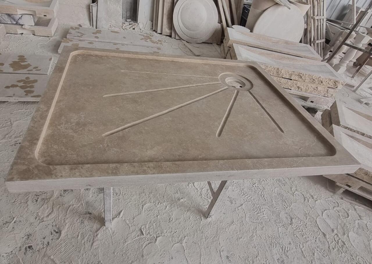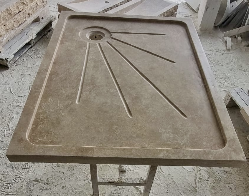 Bac à douche receveur en pierre naturelle Travertin 140x90cm + cannelures, épaisseur 5cm