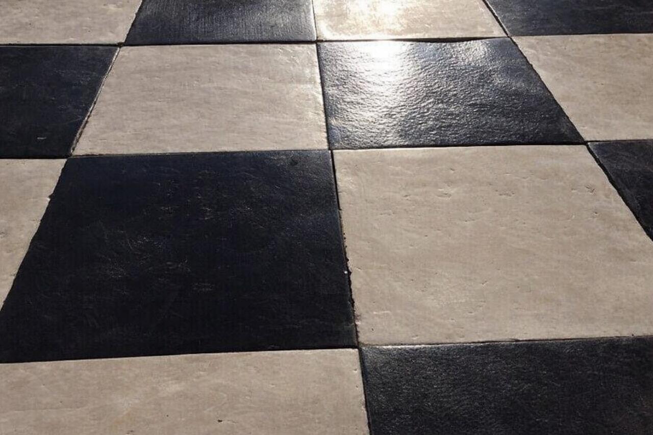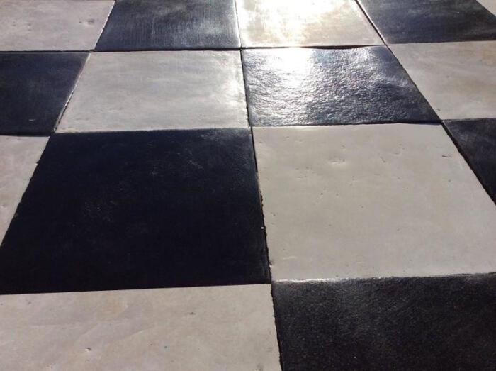Dallage en damier Antique Noir et Ivoire en pierre naturelle vieillie
