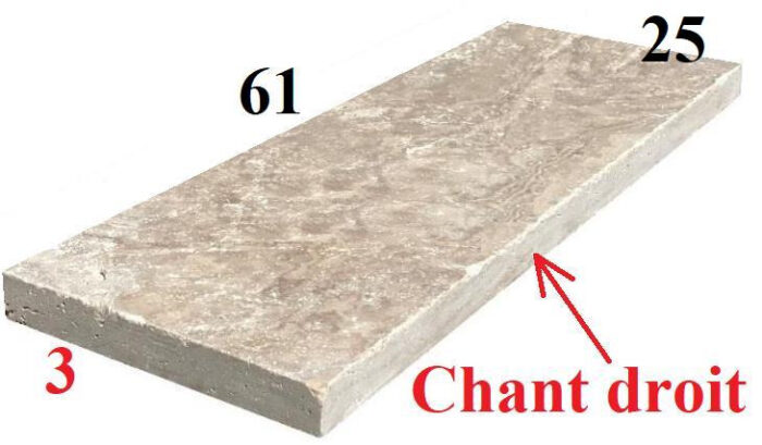 Bon plan – Margelle couvertine pierre naturelle Travertin Classic Light Mix Nuancé 61x25cm chant droit, épaisseur 3cm – Prix au ml