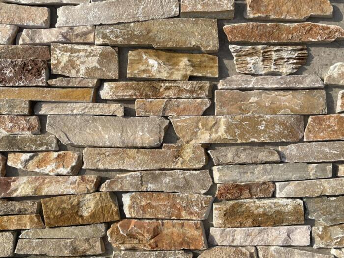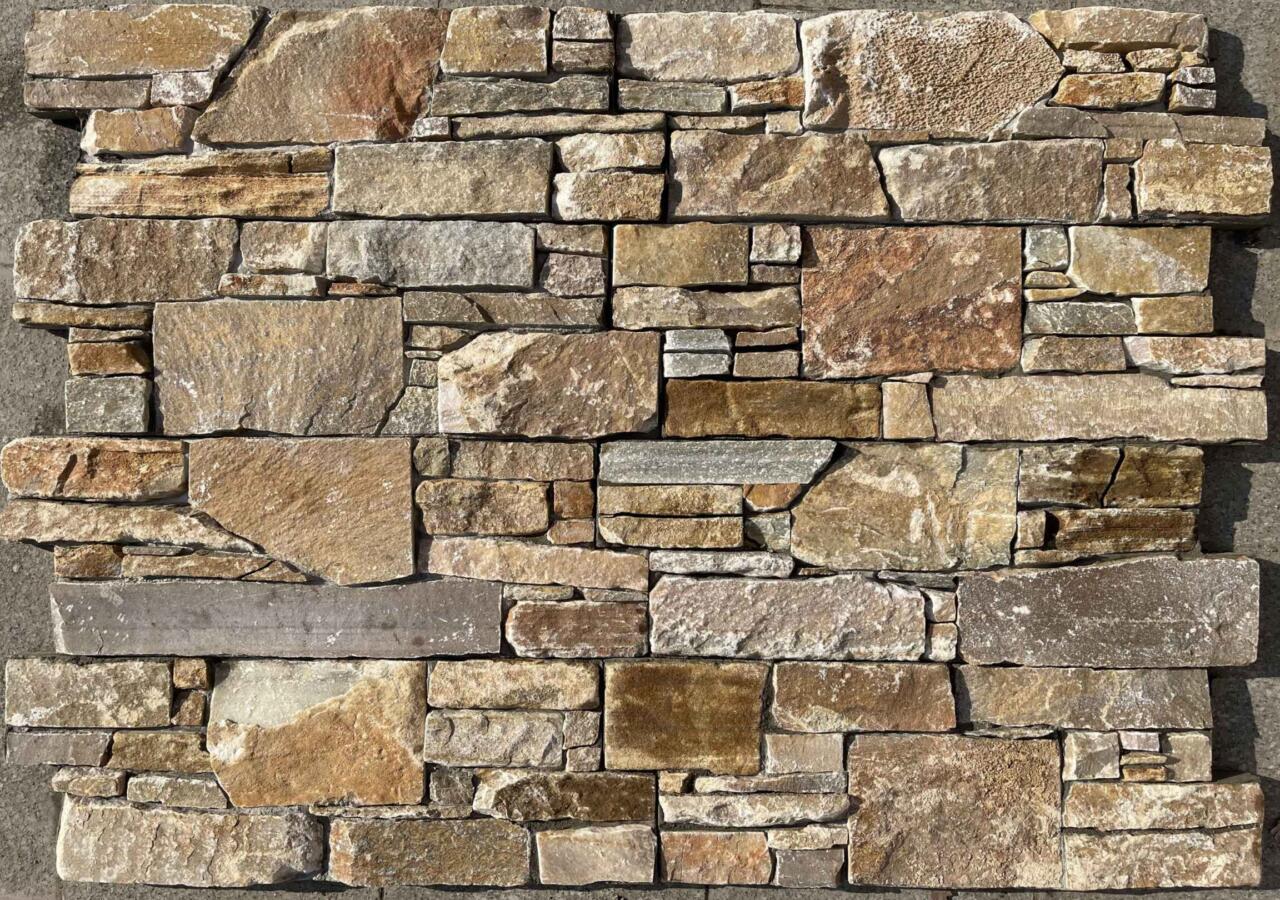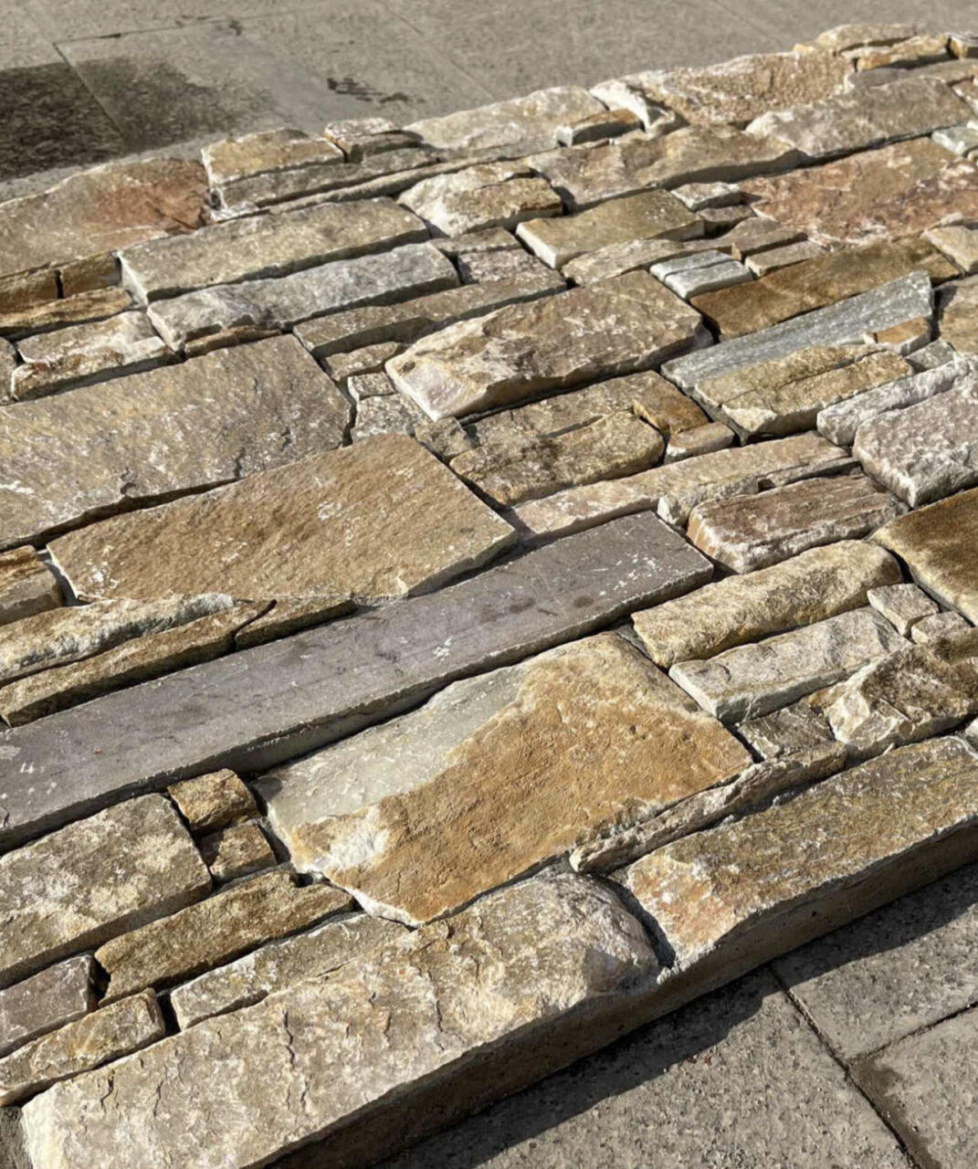 Parement mural en pierre naturelle Quartzite Doré en vrac 10 à 60cm x 3 à 15cm, épaisseur 2 à 4cm – Prix au m²