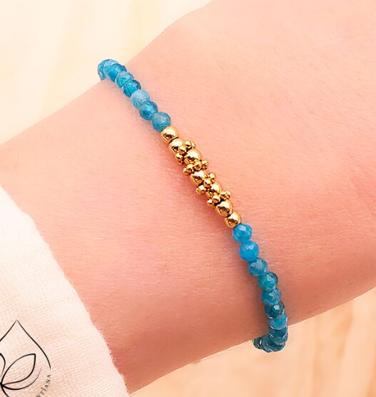 BRACELET ALÉA DORÉ APATITE BLEUE AA – Prix à l’unité