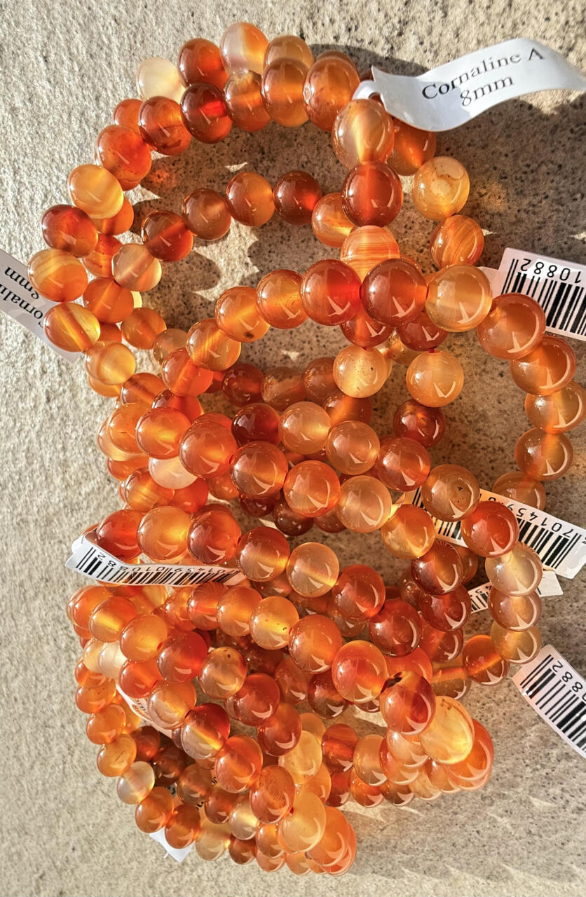 BRACELET BOULE 08MM CORNALINE A – Prix à l’unité