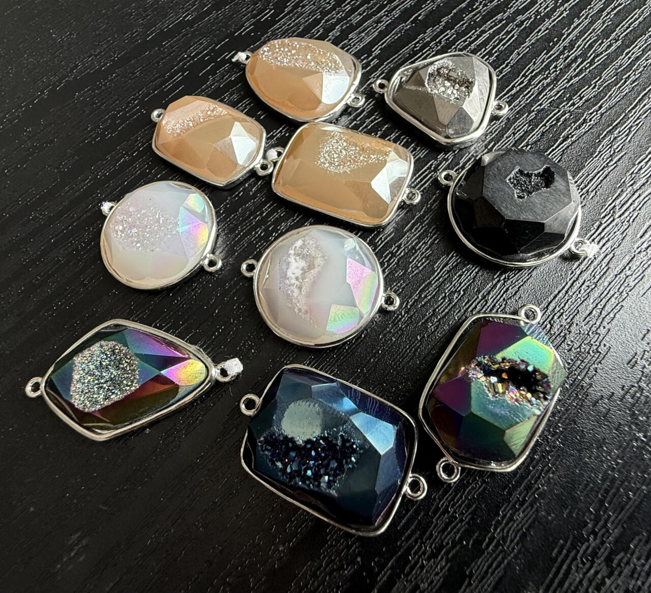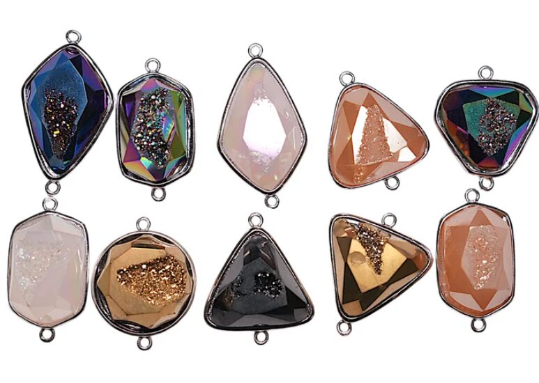 Connecteur FB en cristal synthétique et laiton argenté aléatoire – Prix à l’unité
