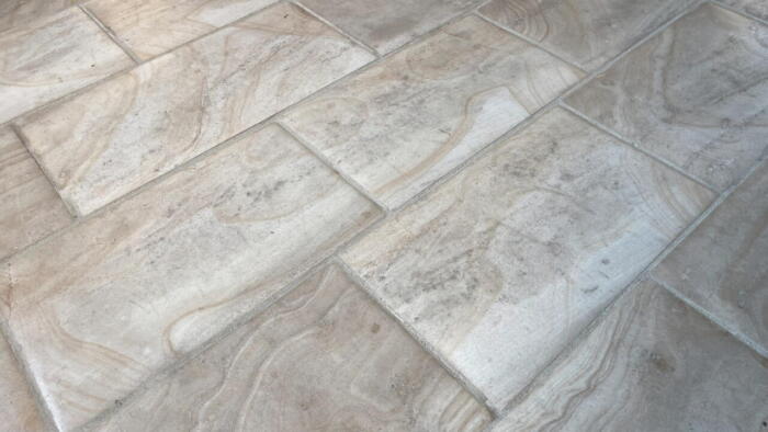 Dallage Château pierre naturelle française, vieilles dalles de France, bande 40cm arêtes vives, épaisseur 1,5cm – Prix au m²