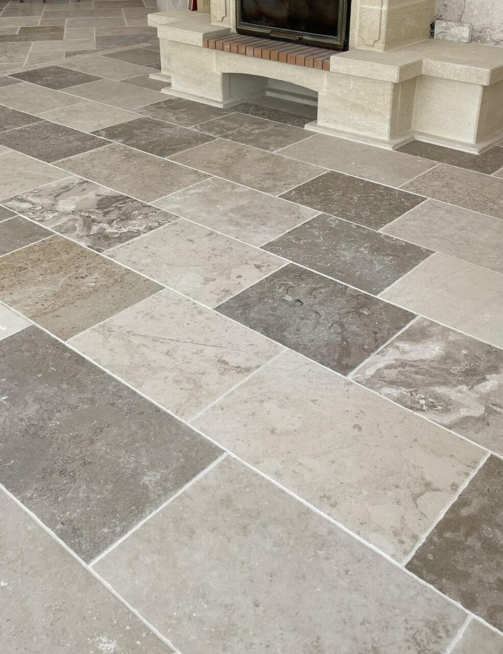 Dallage en pierre de Montagnac B1 toutes nuances Brossé arêtes vives Bandes longueurs libres, largeurs 30/40/50cm, épaisseur 2cm – Prix au m²