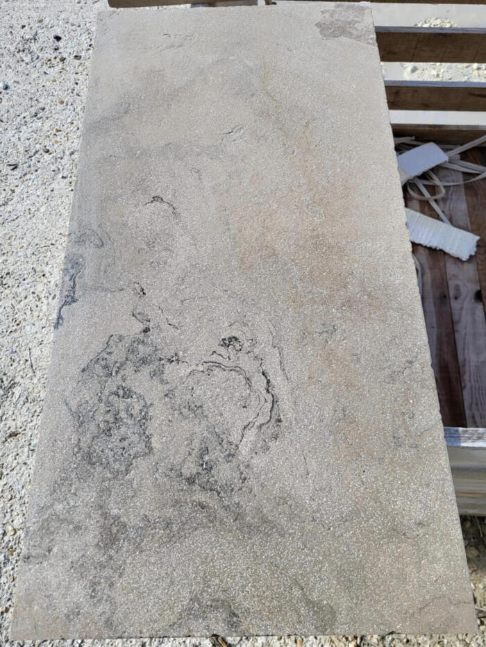 DALLAGE EN PIERRE NATURELLE Montagnac Gris, Sablé brossé arêtes ébréchées Bandes longueurs libres, largeur 40cm Epaisseur 2cm – Prix au m²