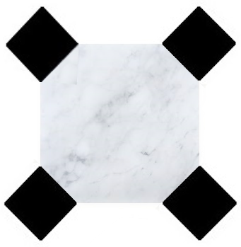 Dallage marbre Blanc SEFA adouci 20x20cm, épaisseur 1,2cm + Cabochon noir – Prix au m²