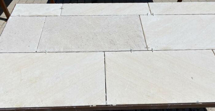 Dallage pierre Montagnac d’Auberoche B1 Clair Brossé Grand Opus Romain, épaisseur 2cm – Prix au m²