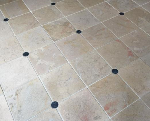 Dallage pierre naturelle 30x30cm avec cabochon rond, 1 pan coupé par dalle, épaisseur 1,5cm – Prix au m²