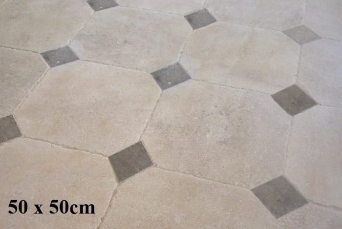Dallage pierre naturelle 50x50cm cabochon 4 pans coupés, épaisseur 2cm – Prix au m²