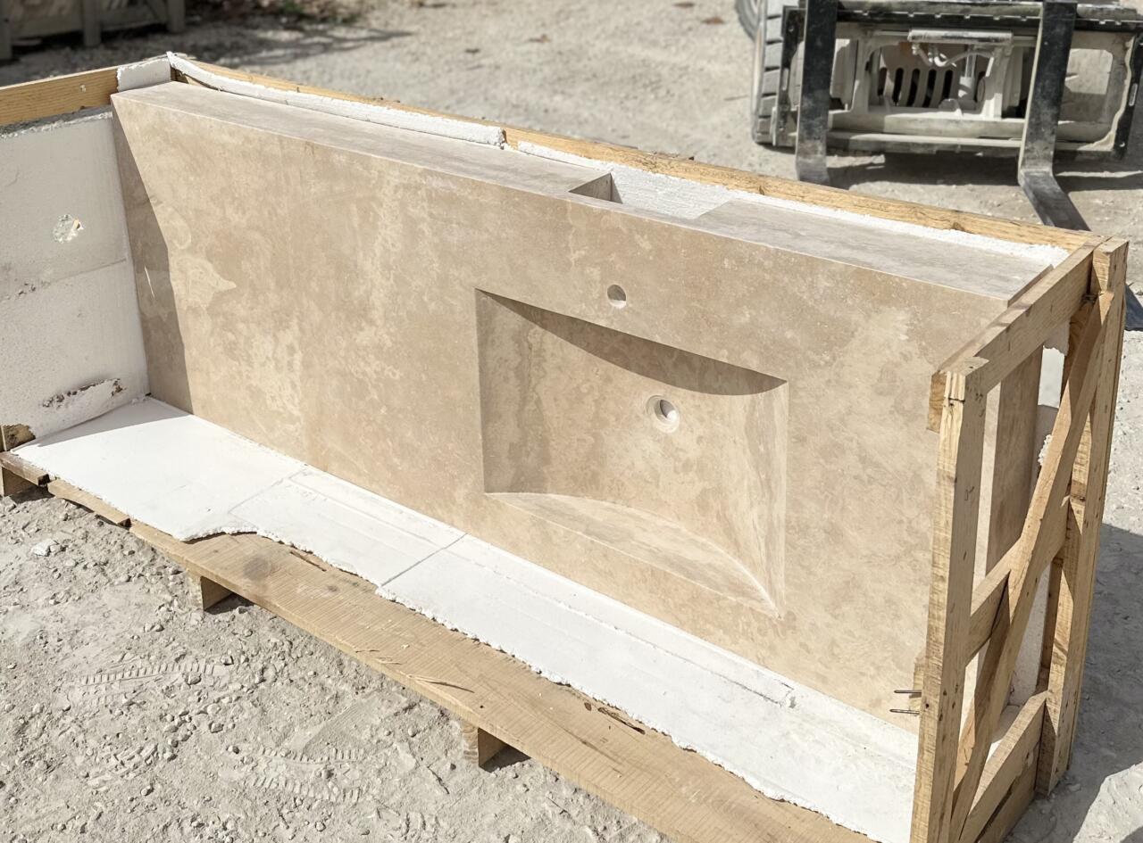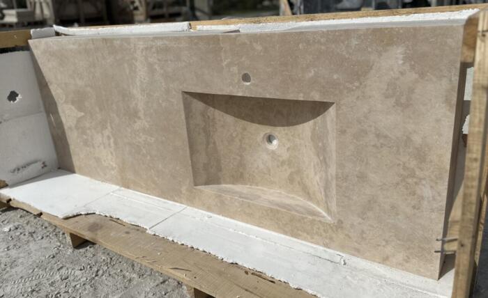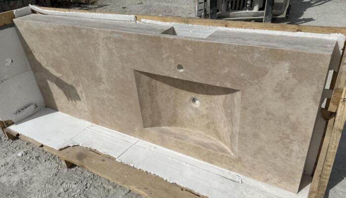 EVIER LESPIGNAN EN TRAVERTIN chant droit
