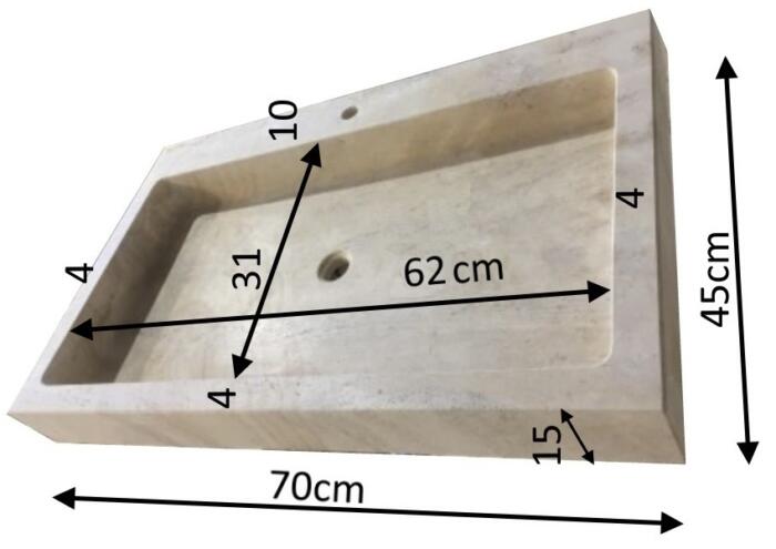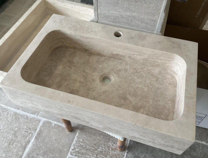 Evier Lubéron en Travertin pierre naturelle 70x45cm, épaisseur 15cm