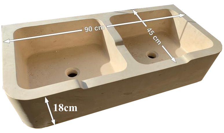 Evier Nice pierre naturelle massive en Travertin 90x45cm, épaisseur 18cm
