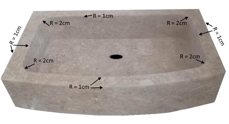 Devant galbé + angles avec rayon 1cm + angle du trou du bac
