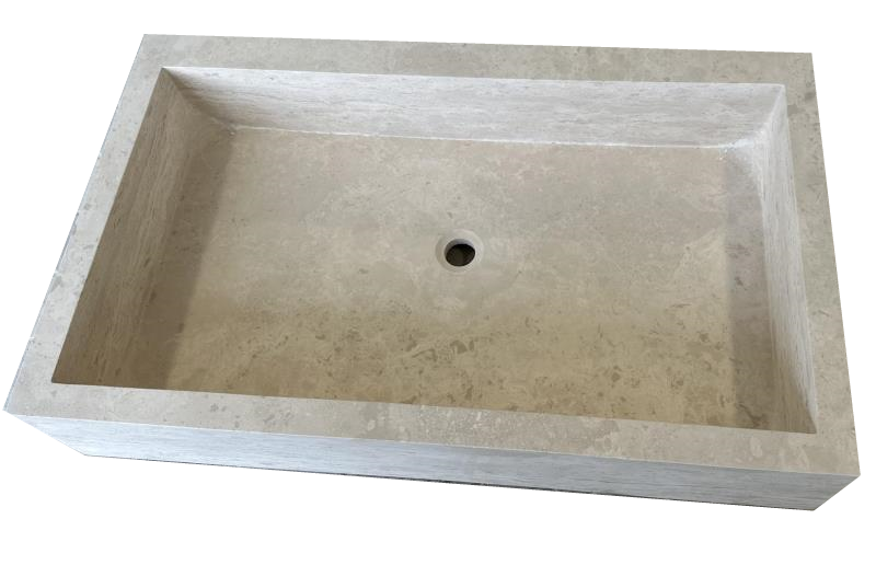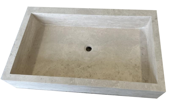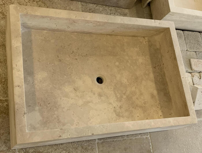Evier Valliguières 90x60cm en pierre naturelle massive Travertin, épaisseur 18cm