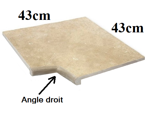 Margelle d’angle décaissé chant 1/2 rond (avec angle droit) Travertin – Prix à l’unité