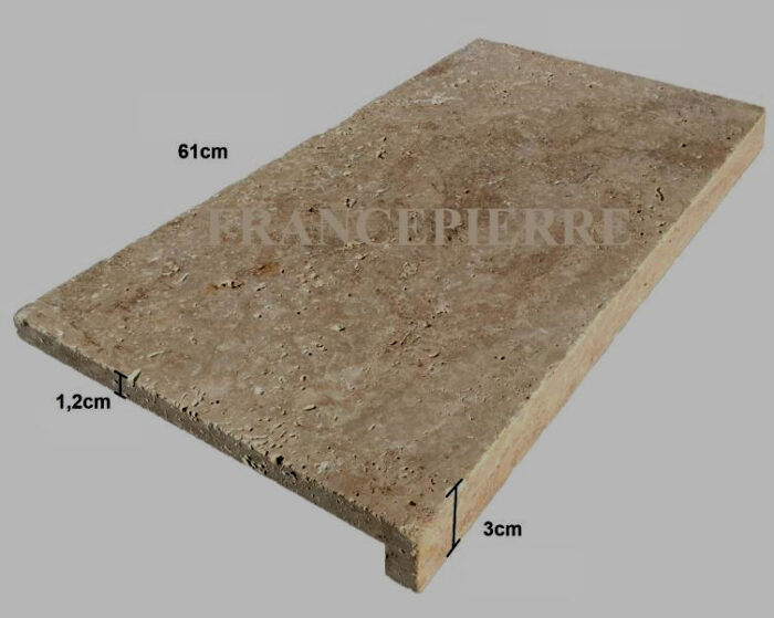 Margelle décaissée / évidée Travertin Standard 61x33cm, chant droit, épaisseur 3cm – Prix à l’unité