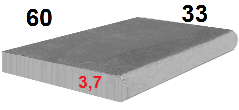 Margelle pierre naturelle Aval Gris Atlas 61x33x3,7cm chant 1/2 rond, épaisseur 3,7cm – Prix au ml