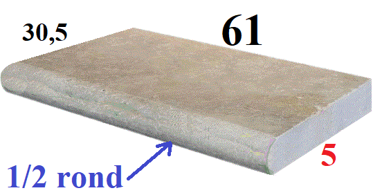 61 x 30,5 x 5cm (38 kg /ml) Chant 1/2 rond sur 1 longueur