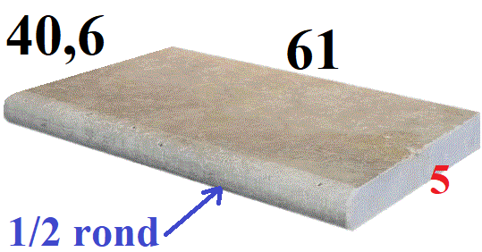 Margelle Travertin Classic Light Mix Nuancé chant 1/2 rond 61×40,6cm, épaisseur 5cm – Prix au ml