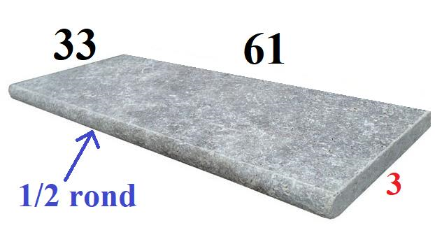 Margelle Travertin Gris Silver 61x33cm chant 1/2 rond, épaisseur 3cm – Prix au ml