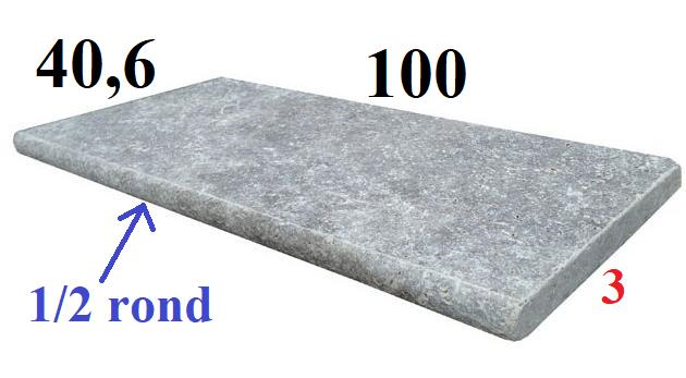 Margelle Travertin Gris Silver chant 1/2 rond 100×40,6cm, épaisseur 3cm – Prix au ml