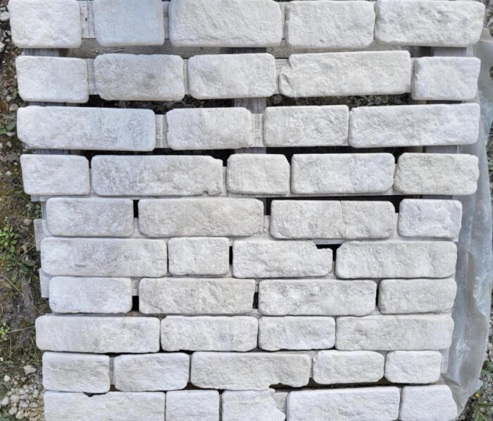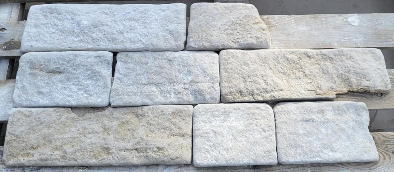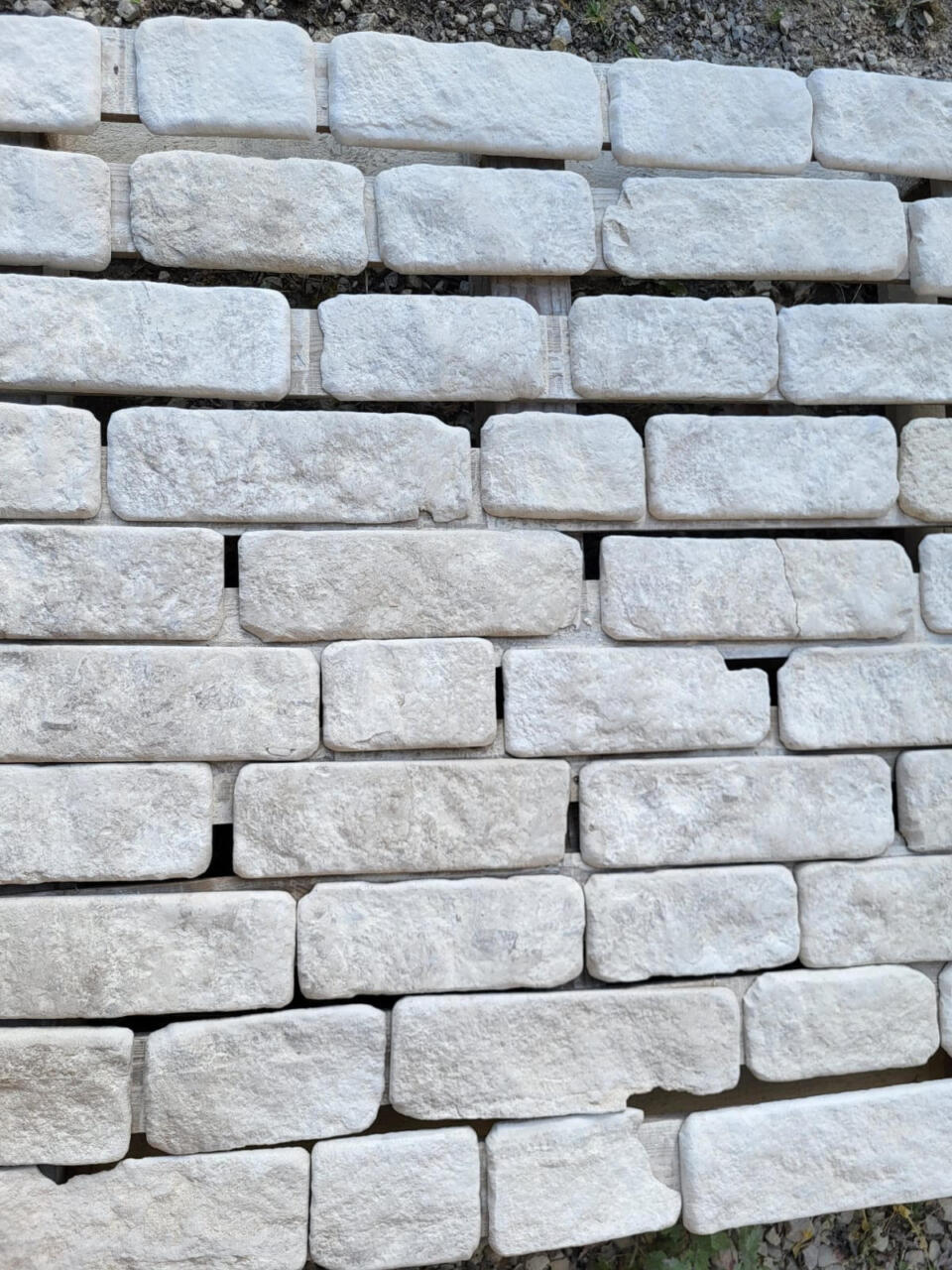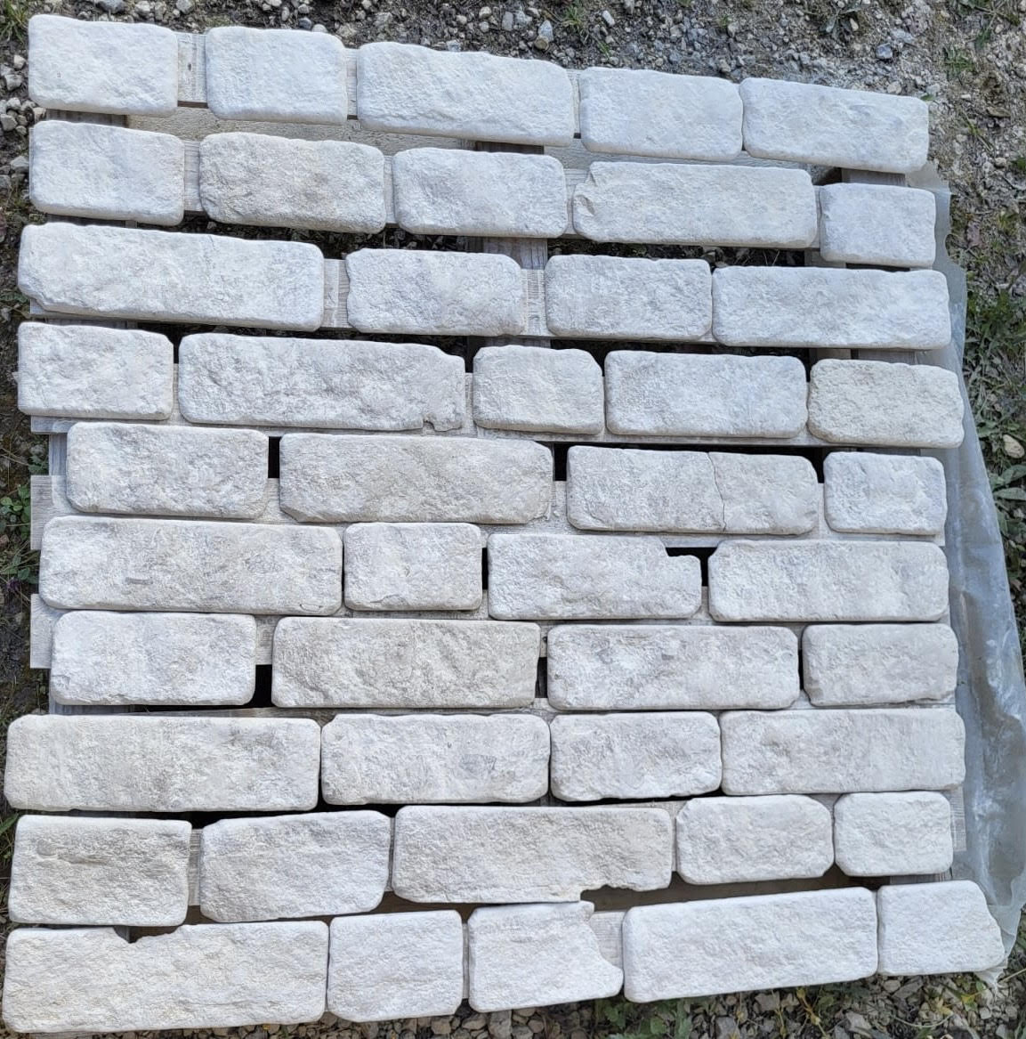 Parement en pierre naturelle à coller pour façade en bandes largeur 15cm. Epaisseur 1,5cm – Prix au m²