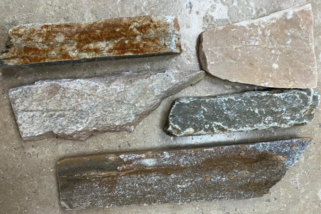 Parement mural en pierre naturelle Quartzite Doré en vrac 10 à 60cm x 3 à 15cm, épaisseur 2 à 4cm – Prix au m²