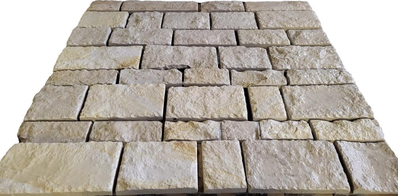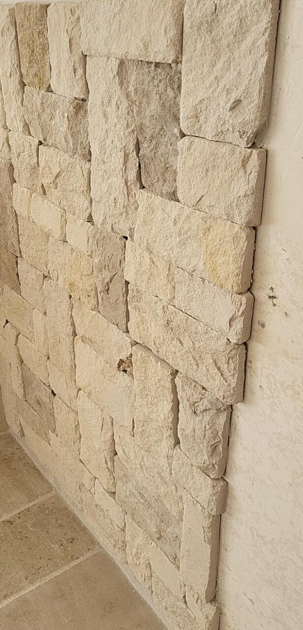 Parement Opus Romain Montagnac d’Auberoche Parement face et arêtes éclatées, face arrière sciée pour collage. Longueurs libres de 10 à 30cm. Hauteurs 5 / 10 / 15 / 20cm. Epaisseur +/- 2 à 4cm (75 kg/m²)