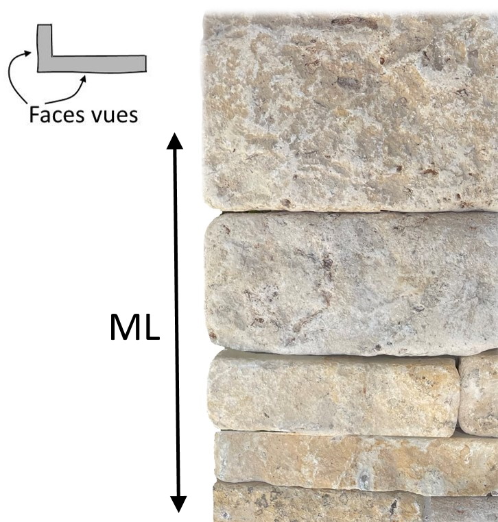 Parement pierre ANGLE en « L » Montagnac d’Auberoche B1 toutes nuances vieilli, épaisseur 3cm – Prix au ml