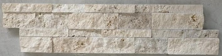 Parement pierre mural naturel en Z – Travertin 61x15cm, épaisseur 1,5 à 1,7cm – Prix au m²