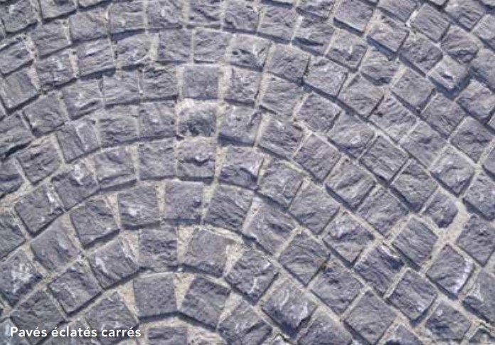 Les pavés de Pierre Bleue du Hainaut® dont les faces inférieure et supérieure sont éclatées (4 chants sciés).
