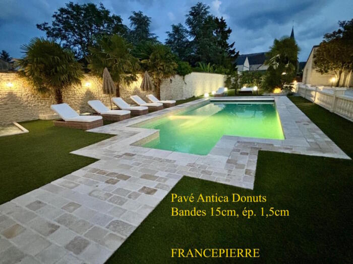 Pavé ANTICA© DONUTS en Pierre de France, Bande 15cm Toutes nuances de Beige. Epaisseur 6cm – Prix au m²