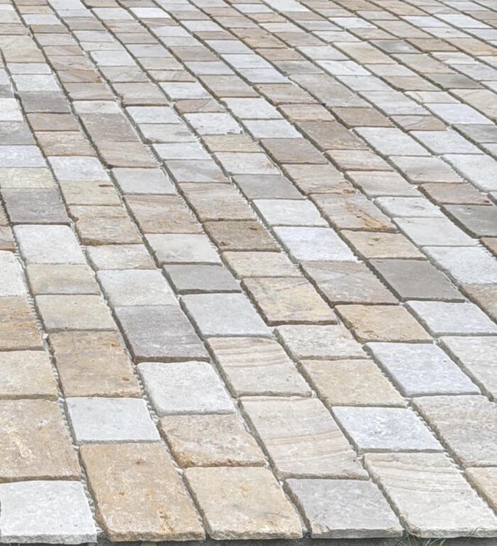 Pavé ANTICA© DONUTS en PIERRE DE FRANCE Toutes nuances de Beige, Bandes longueurs libres, largeur 15cm. Epaisseur 8cm – Prix au m²