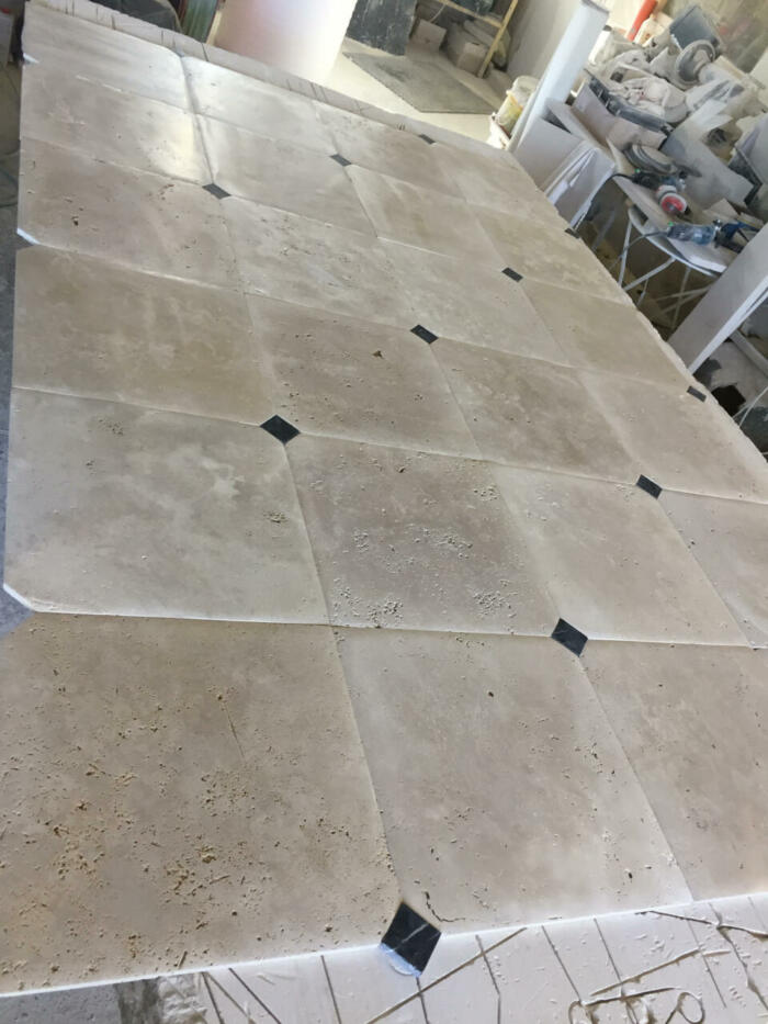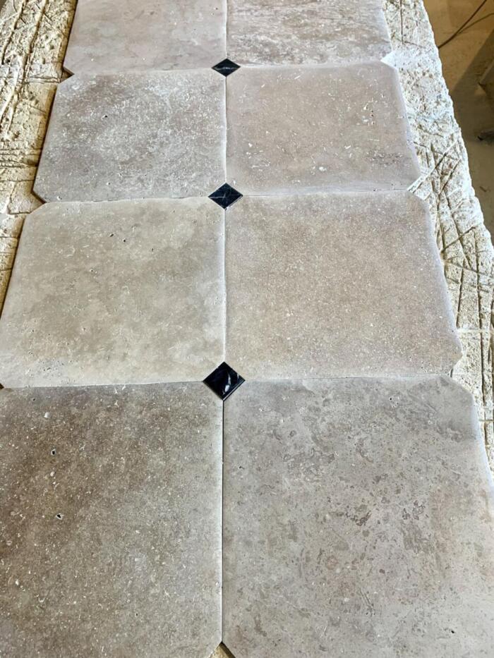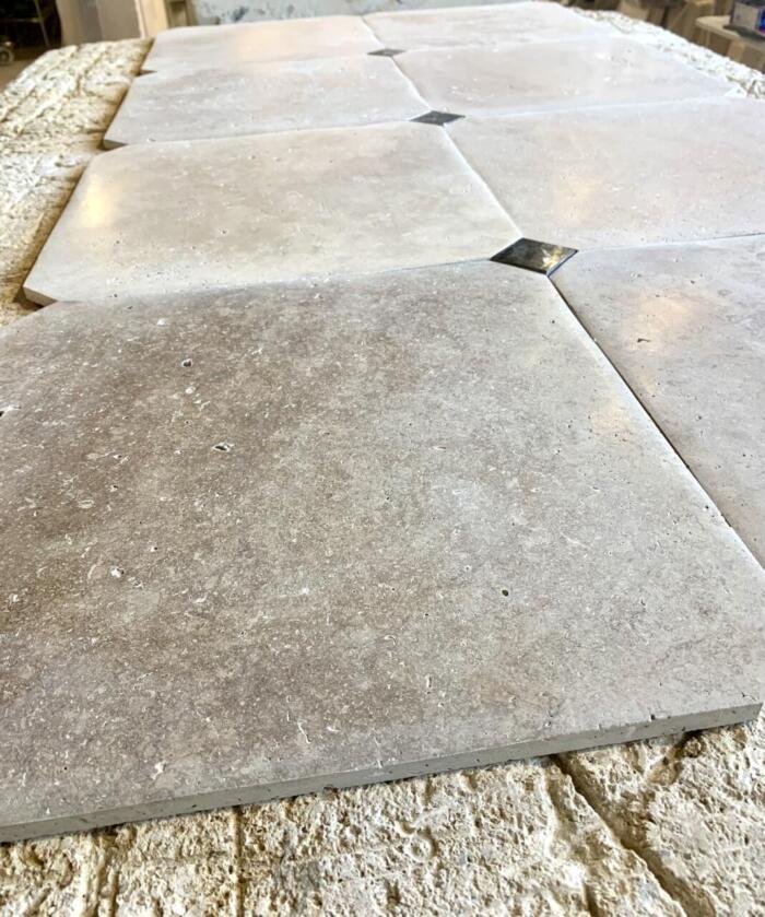 Travertin Antique de France. Pierre Naturelle. Bombé Patiné 40x40cm 2 pans coupés + Cabochon, épaisseur 1,2cm – Prix au m²