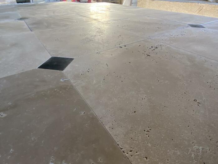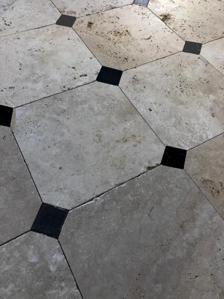 DALLAGE TRAVERTIN 40 x 40 + cabochon gris ou noir