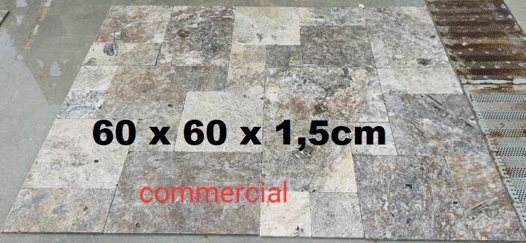 Travertin Commercial Gris Silver 60x60cm, épaisseur 1,5cm – Prix au m²