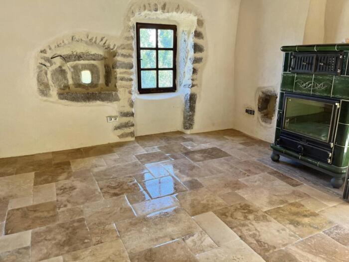 Bon Plan – Travertin Nuancé, Antique de France – Opus Romain, Pierre Naturelle, épaisseur 1,2cm – Prix au m²