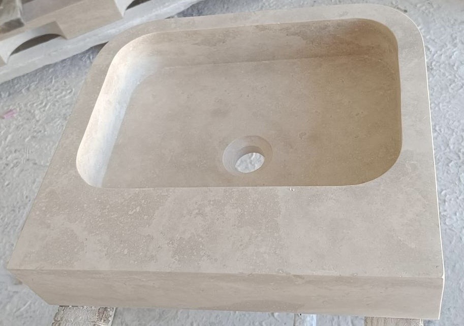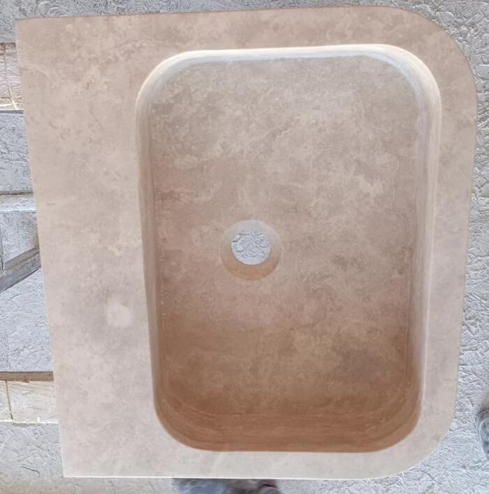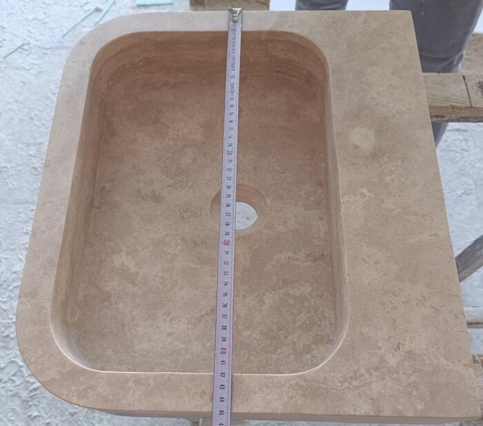 VASQUE ARLES TRAVERTIN CLAIR sans trou robinetterie 45 x 40 x 10cm