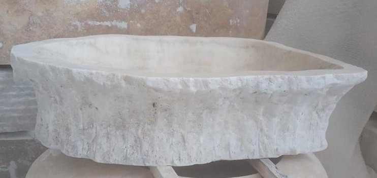 VASQUE AUGE TRAVERTIN CLAIR 60 x 41 x 15cm. Forme évasée et éclatée