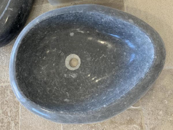 VASQUE BRUXELLES BLACK MARBRE NOIR POLI Ovale et galbé 60 x 45 x 15cm