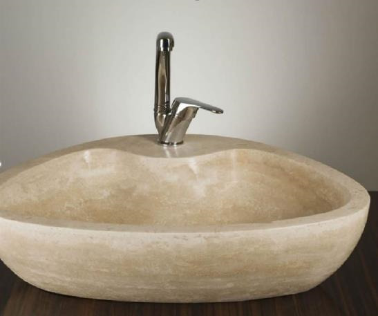 VASQUE CAGNES-SUR-MER TRAVERTIN CLAIR avec trou robinetterie 60 x 45 x 15cm