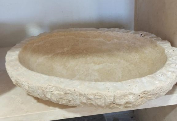 VASQUE CARCASSONNE TRAVERTIN CLAIR BORD GALBE ECLATE Ovale 39 x 28 x 10cm