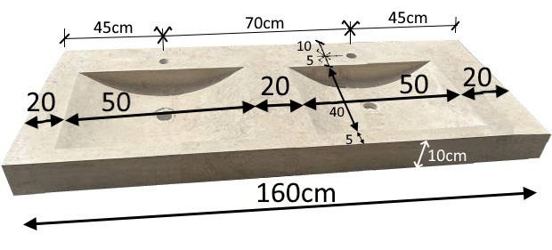 VASQUE DOUBLE « PICPUS » TRAVERTIN BEIGE Clair Avec 2 trous robinetterie 160 x 60 x 10cm – Prix à l’unité