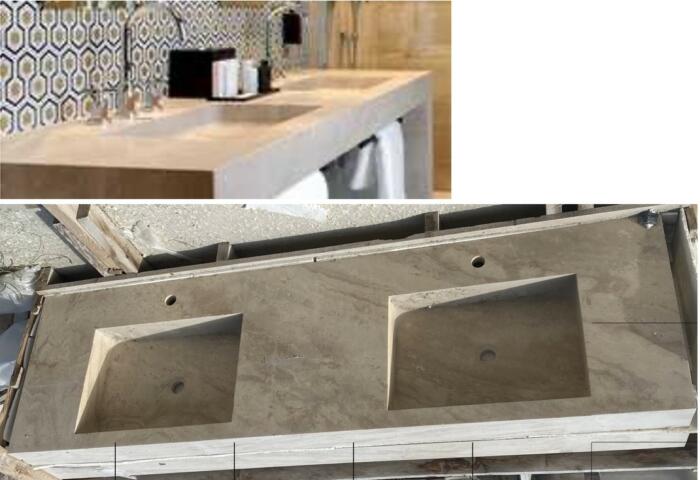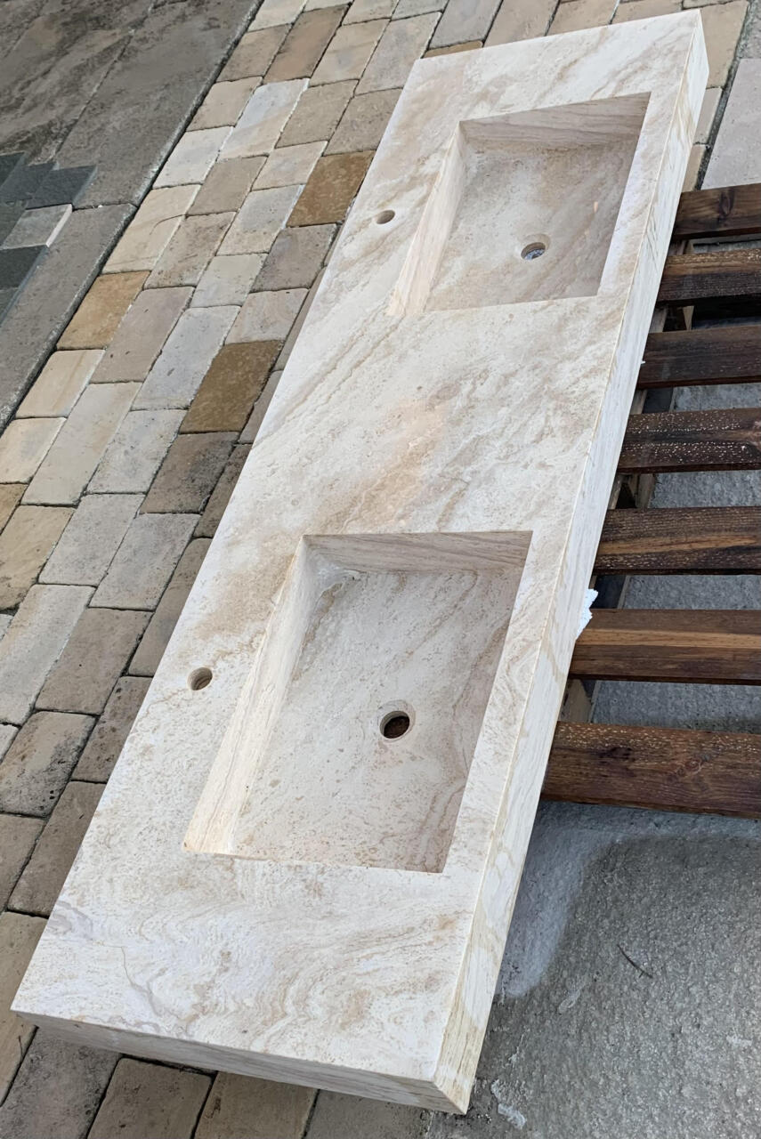Vasque double Valbonne en pierre Travertin 190x55cm, épaisseur 12cm